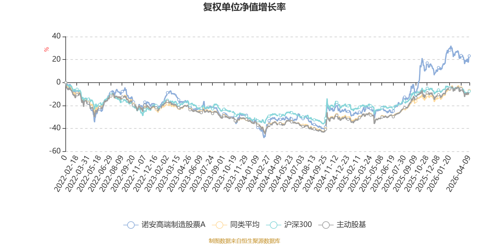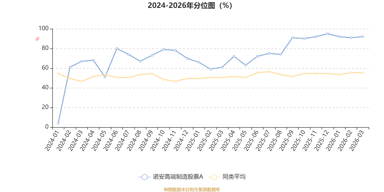 截至4月9日,诺安高端制造股票A近三个月复权单位净值增长率为-2.85%,位于同类可比基金88/121;近半年复权单位净值增长率为1.56%,位于同类可比基金79/121;近一年复权单位净值增长率为70.58%,位于同类可比基金18/120;近三年复权单位净值增长率为46.88%,位于同类可比基金11/90。
