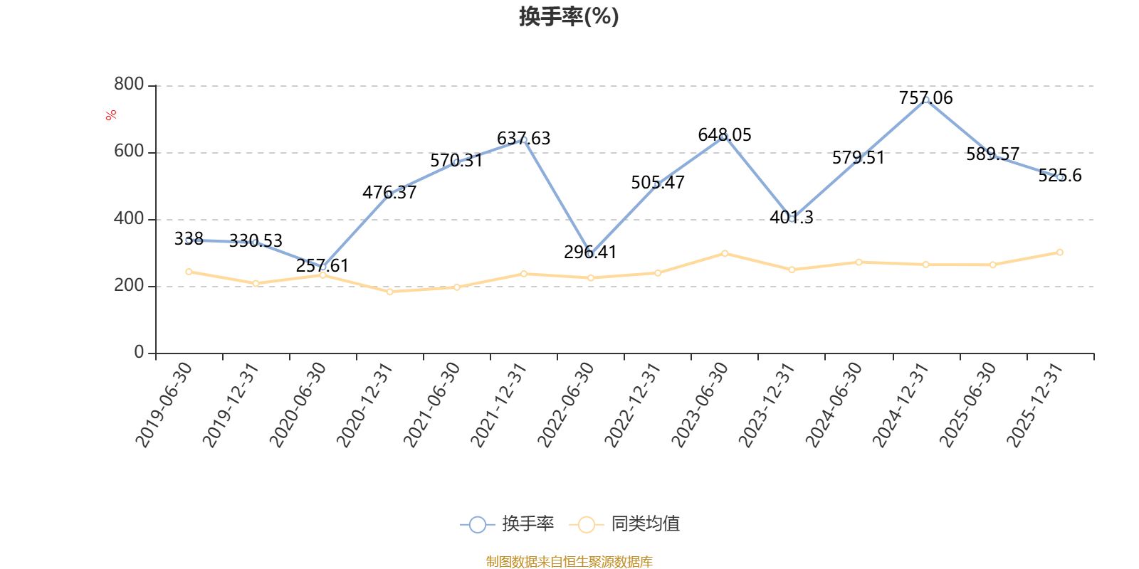 截至2025年12月31日,基金最近一年换手率约1045.22%,持续高于同类均值。