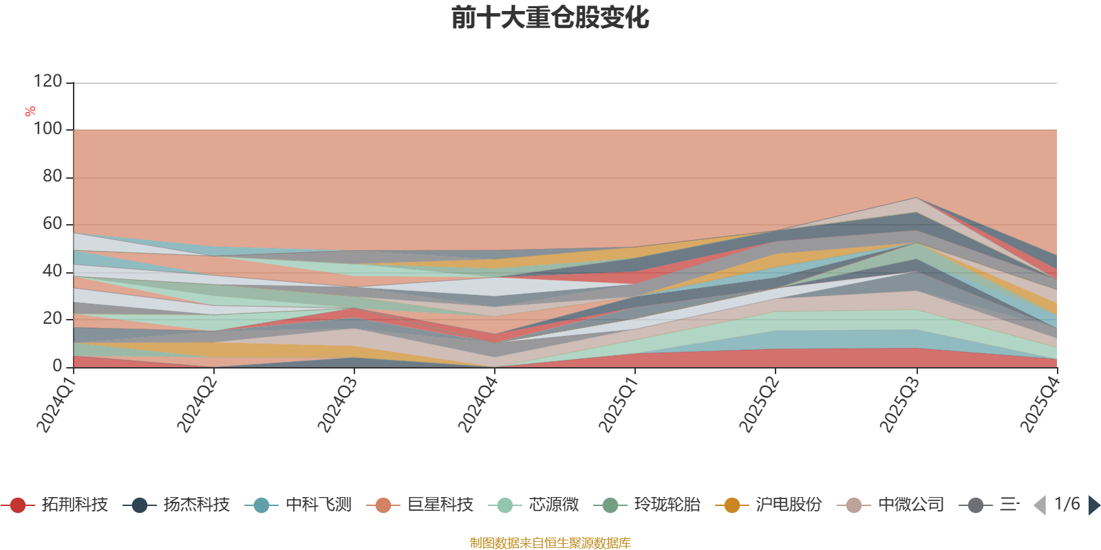 截至2025年末,基金十大重仓股分别是中芯国际、海光信息、寒武纪、新铝时代、芯源微、纵横股份、三一重工、华峰测控、中微公司、拓荆科技。