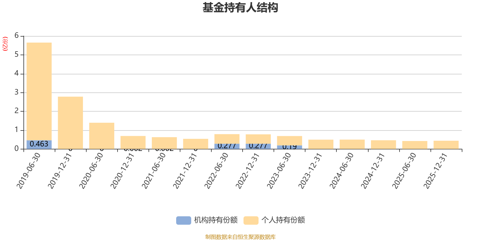 截至2025年12月31日,基金持有人共计5317户,合计持有4374.95万份。其中管理人员工持有43.15万份,占比0.99%,个人投资者占比100.00%。