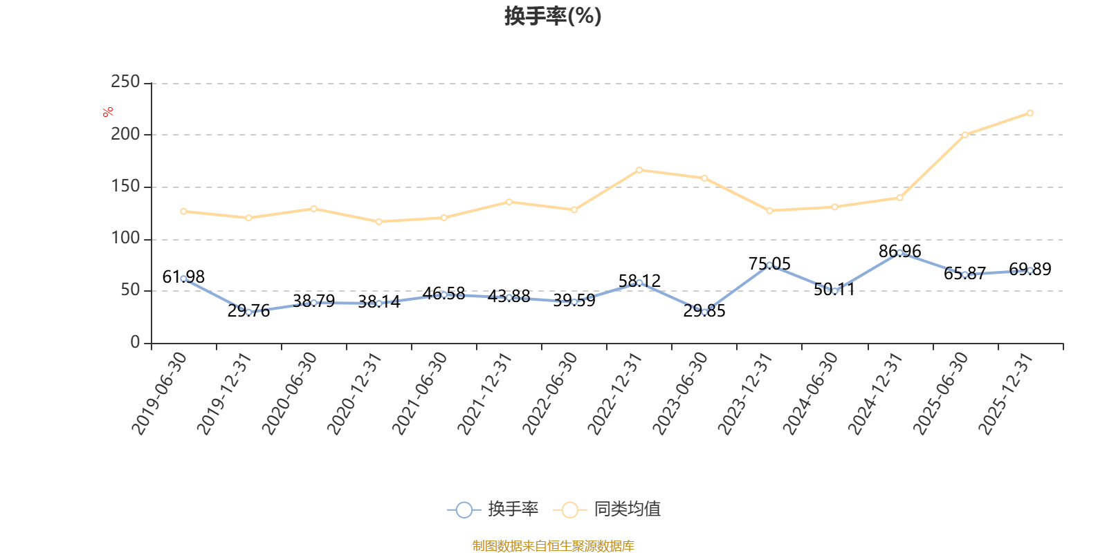 截至2025年12月31日,基金最近一年换手率约136.65%,持续低于同类均值。