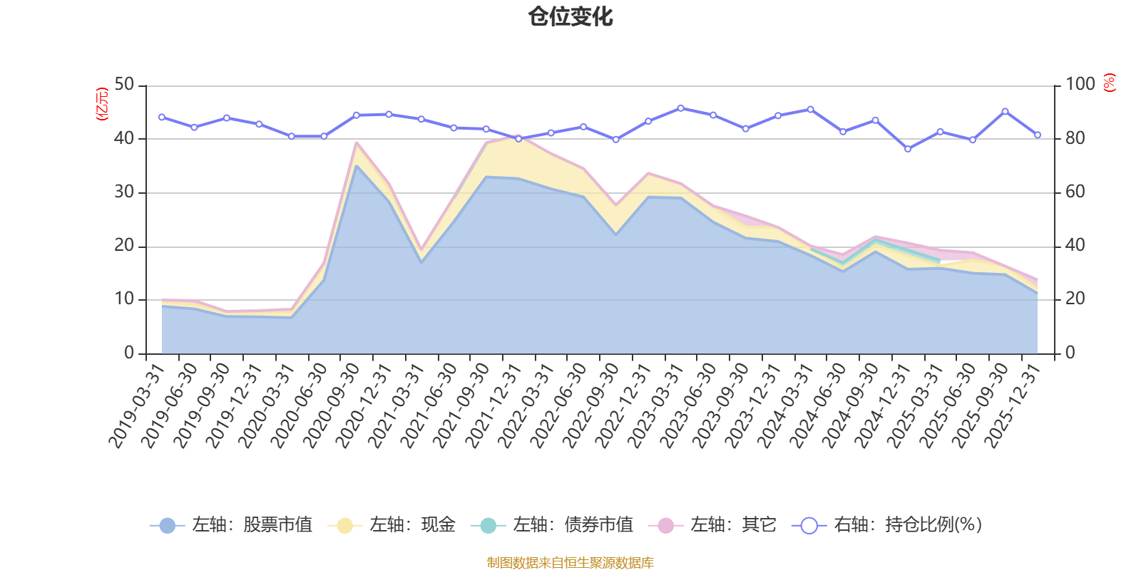 据定期报告数据统计,近三年平均股票仓位为85.41%,同类平均为88.23%。2023年一季度末基金达到91.56%的最高仓位,2024年末最低,为76.38%。