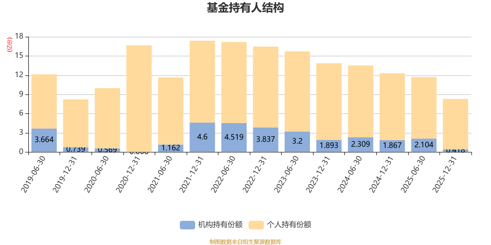 截至2025年12月31日,基金持有人共计6.96万户,合计持有8.3亿份。其中管理人员工持有55.25万份,占比0.07%,机构持有份额占比5.04%,个人投资者占比94.96%。