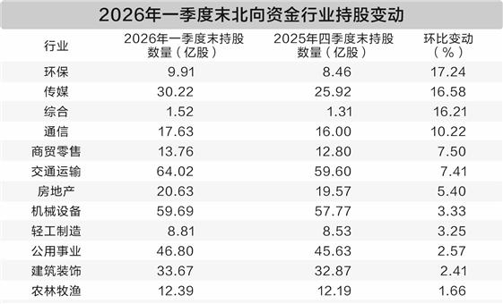 北向资金一季度持股情况公布 12个行业环比获加仓