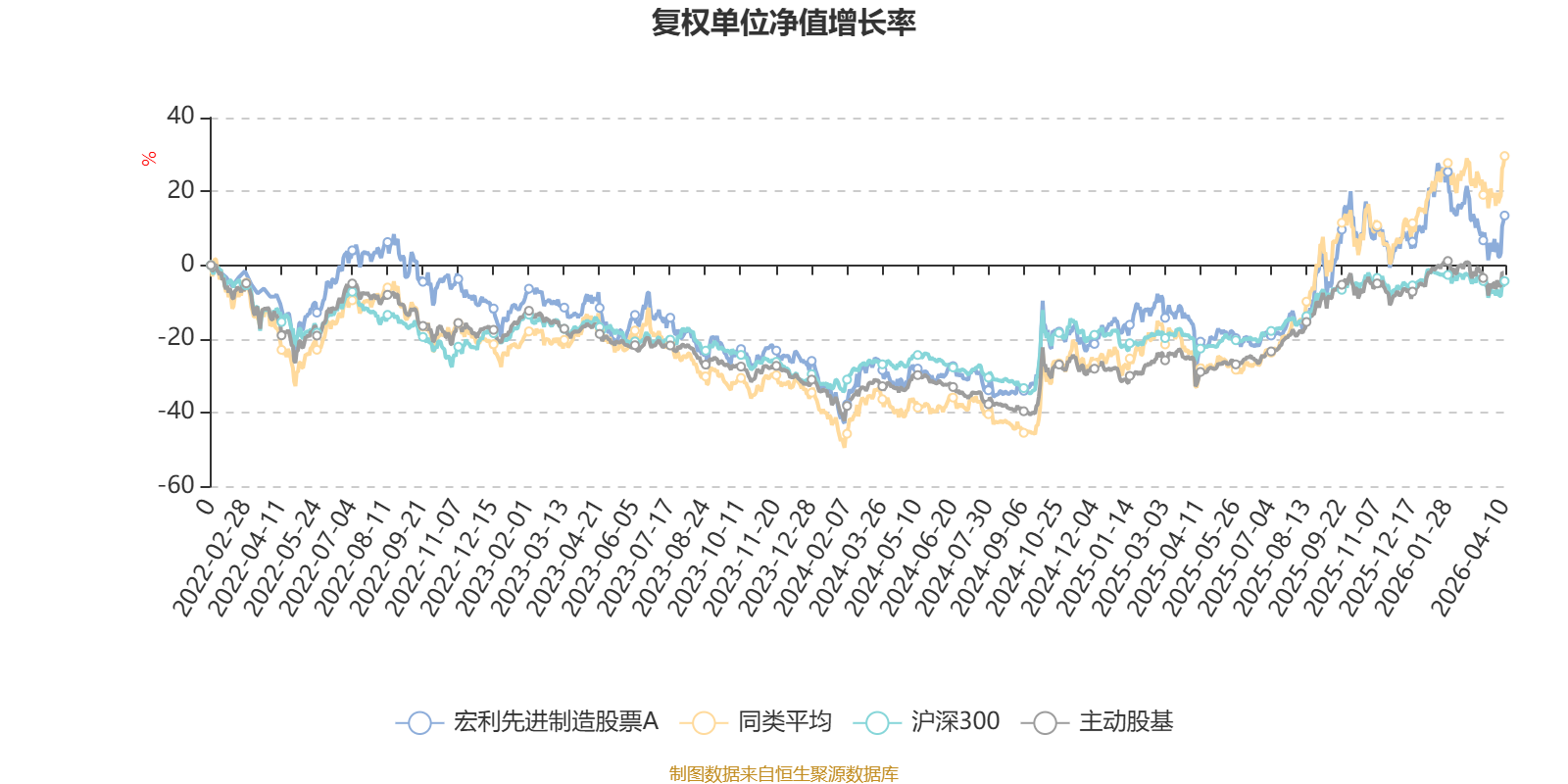截至4月10日,宏利先进制造股票A近三个月复权单位净值增长率为-5.85%,位于同类可比基金51/63;近半年复权单位净值增长率为0.34%,位于同类可比基金49/63;近一年复权单位净值增长率为47.43%,位于同类可比基金44/63;近三年复权单位净值增长率为25.72%,位于同类可比基金39/53。
