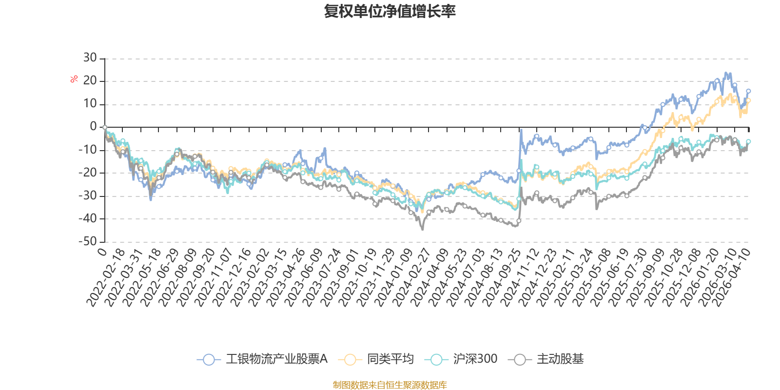 截至4月10日,工银物流产业股票A近三个月复权单位净值增长率为-3.05%,位于同类可比基金49/58;近半年复权单位净值增长率为1.97%,位于同类可比基金37/58;近一年复权单位净值增长率为29.41%,位于同类可比基金41/57;近三年复权单位净值增长率为32.61%,位于同类可比基金26/57。