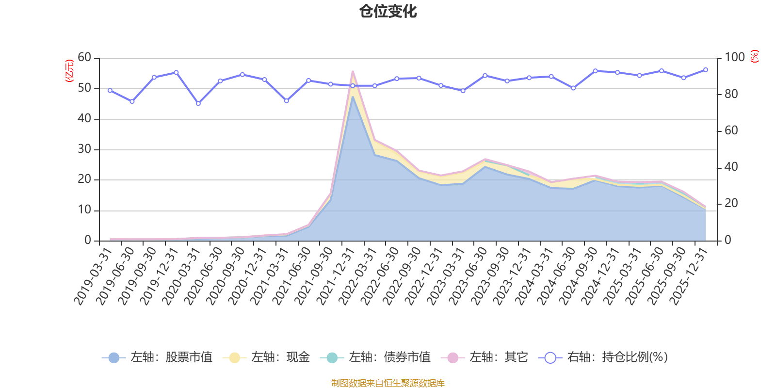 据定期报告数据统计,近三年平均股票仓位为89.58%,同类平均为88.64%。2025年末基金达到93.67%的最高仓位,2020年一季度末最低,为75.2%。