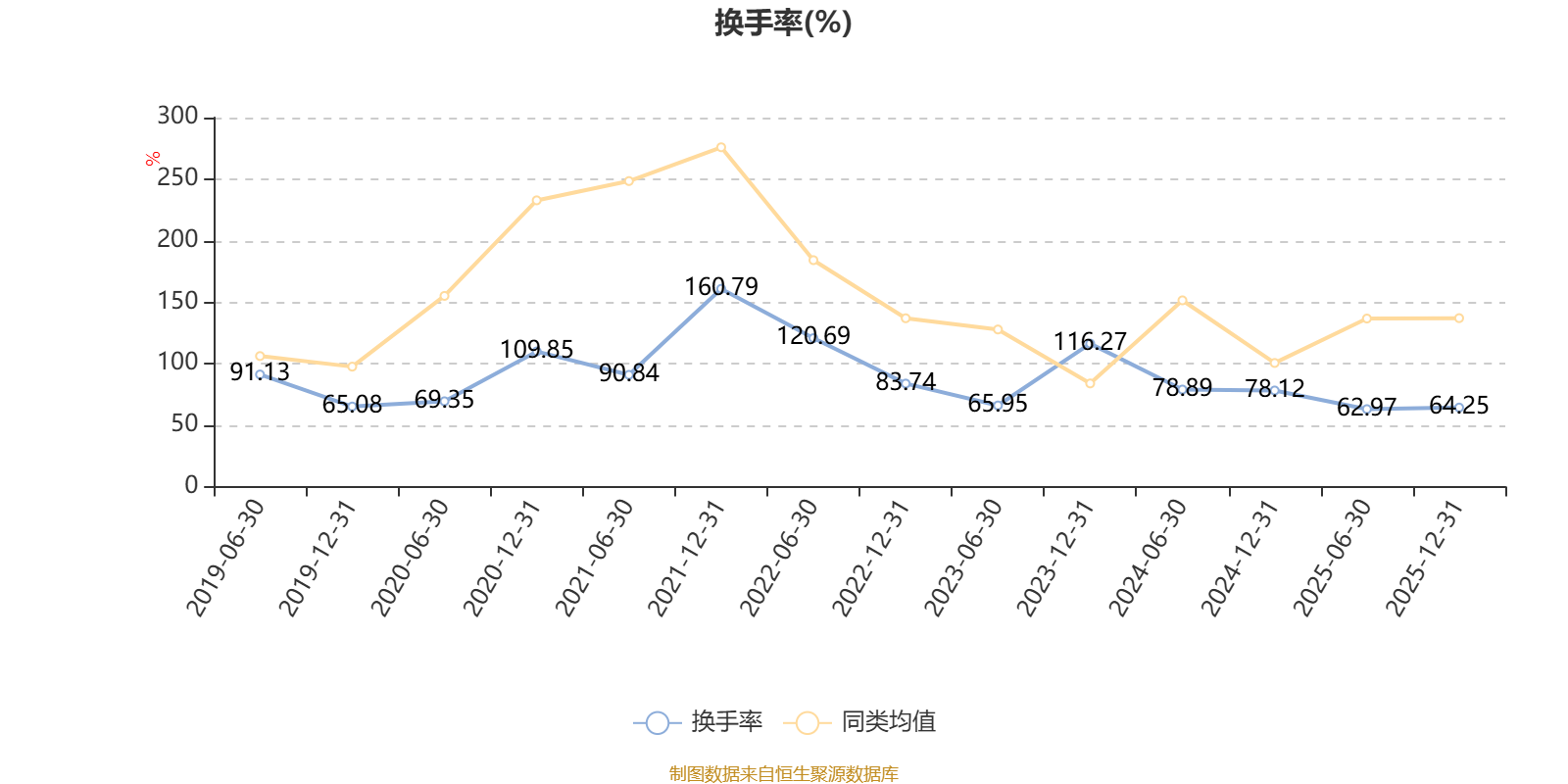 截至2025年12月31日,基金最近一年换手率约128.66%,持续2年低于同类均值。