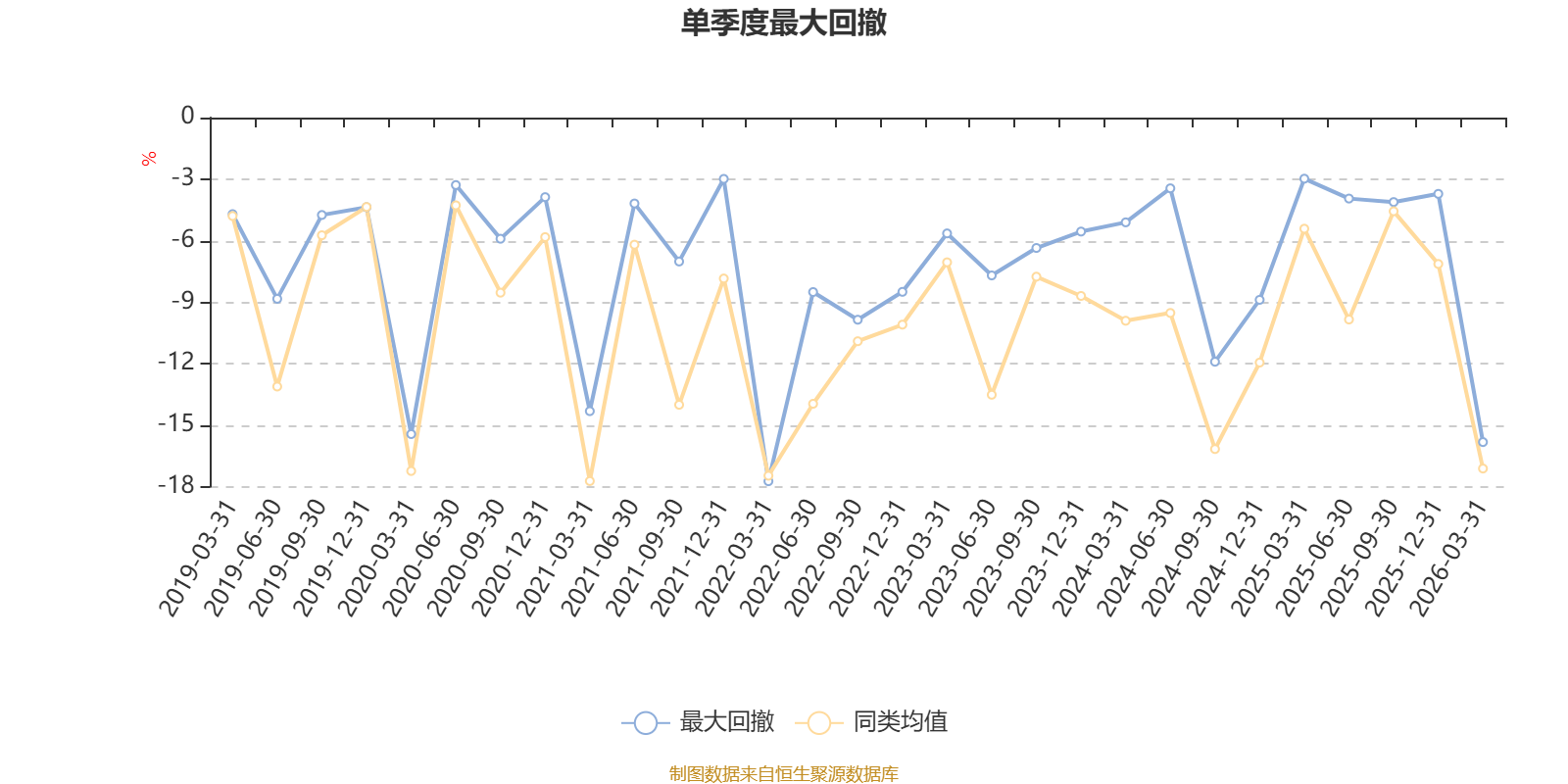 截至4月9日,基金近三年最大回撤为15.83%,同类可比基金排名0/9。单季度最大回撤出现在2022年一季度,为17.74%。