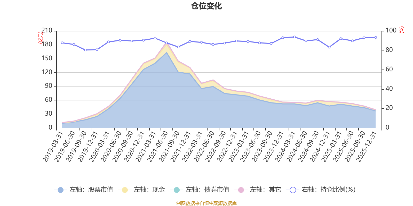 据定期报告数据统计,近三年平均股票仓位为90.22%,同类平均为88.64%。2024年一季度末基金达到93.76%的最高仓位,2019年三季度末最低,为80.32%。