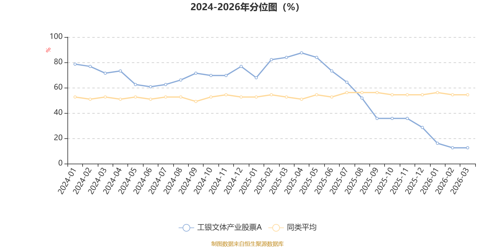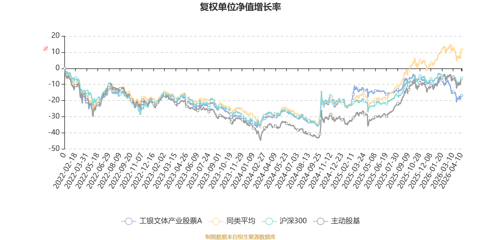 截至4月10日,工银文体产业股票A近三个月复权单位净值增长率为-9.91%,位于同类可比基金57/58;近半年复权单位净值增长率为-11.82%,位于同类可比基金55/58;近一年复权单位净值增长率为-2.66%,位于同类可比基金56/57;近三年复权单位净值增长率为0.20%,位于同类可比基金50/57。
