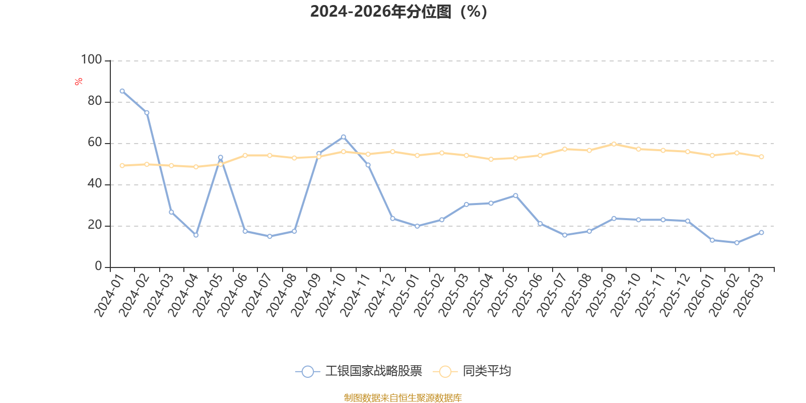 通过所选区间该基金净值增长率分位图,可以观察该基金与同类基金业绩比较情况。图为坐标原点到区间内某时点的净值增长率在同类基金中的分位数。