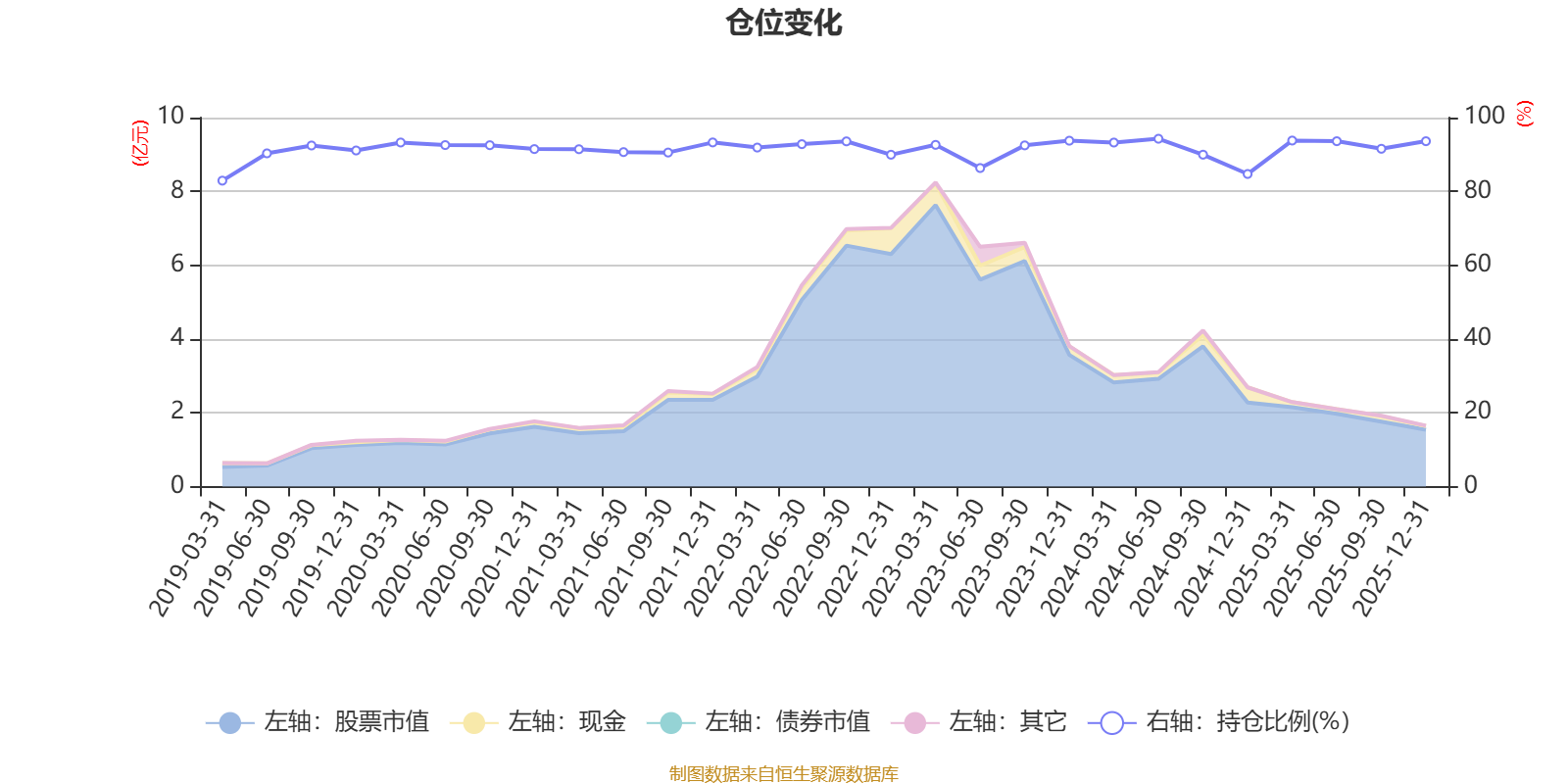 据定期报告数据统计,近三年平均股票仓位为91.66%,同类平均为88.27%。2024年上半年末基金达到94.27%的最高仓位,2019年一季度末最低,为82.91%。