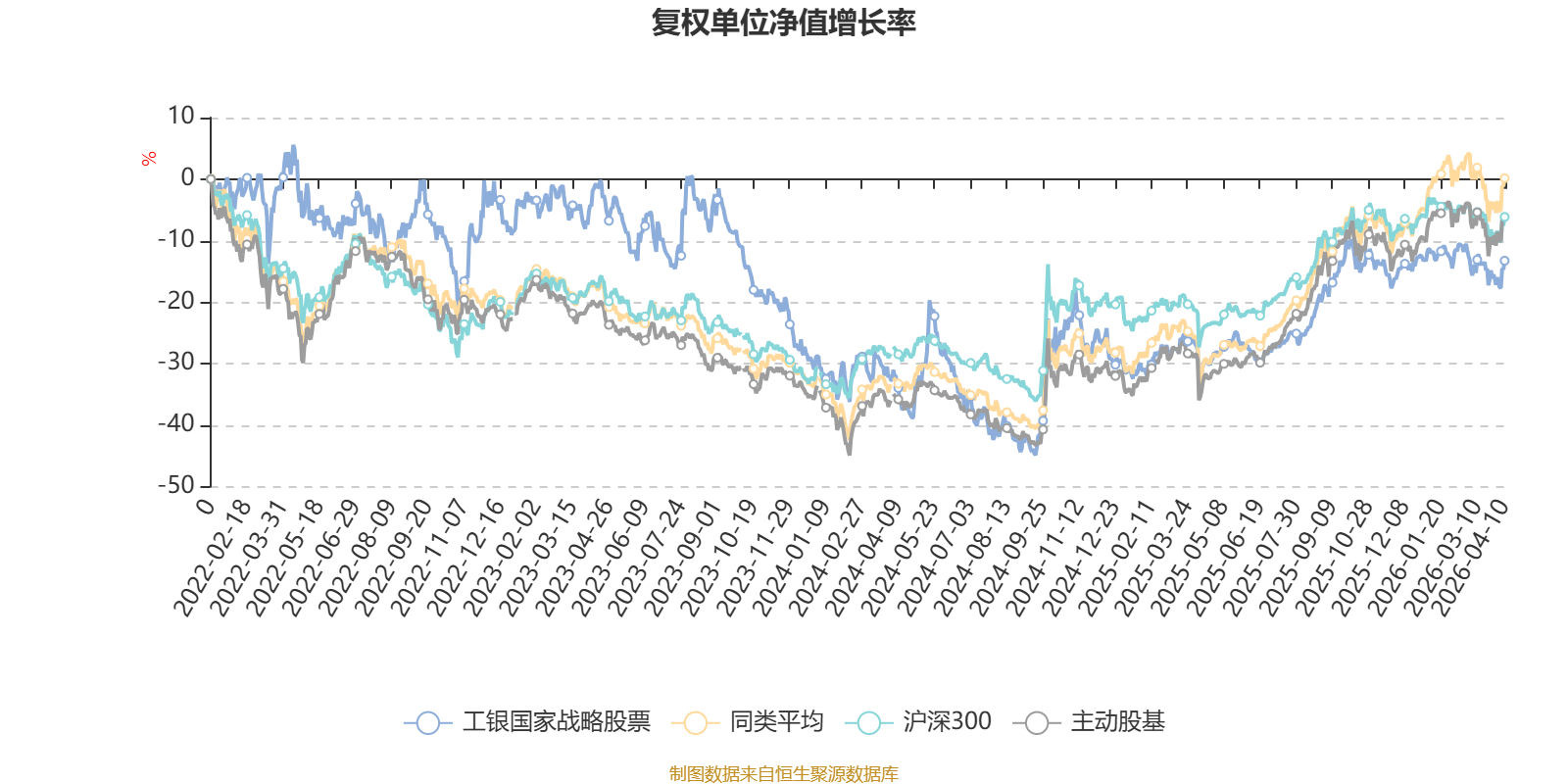 截至4月10日,工银国家战略股票近三个月复权单位净值增长率为-1.61%,位于同类可比基金98/167;近半年复权单位净值增长率为-2.06%,位于同类可比基金126/167;近一年复权单位净值增长率为24.90%,位于同类可比基金124/165;近三年复权单位净值增长率为-11.91%,位于同类可比基金145/157。