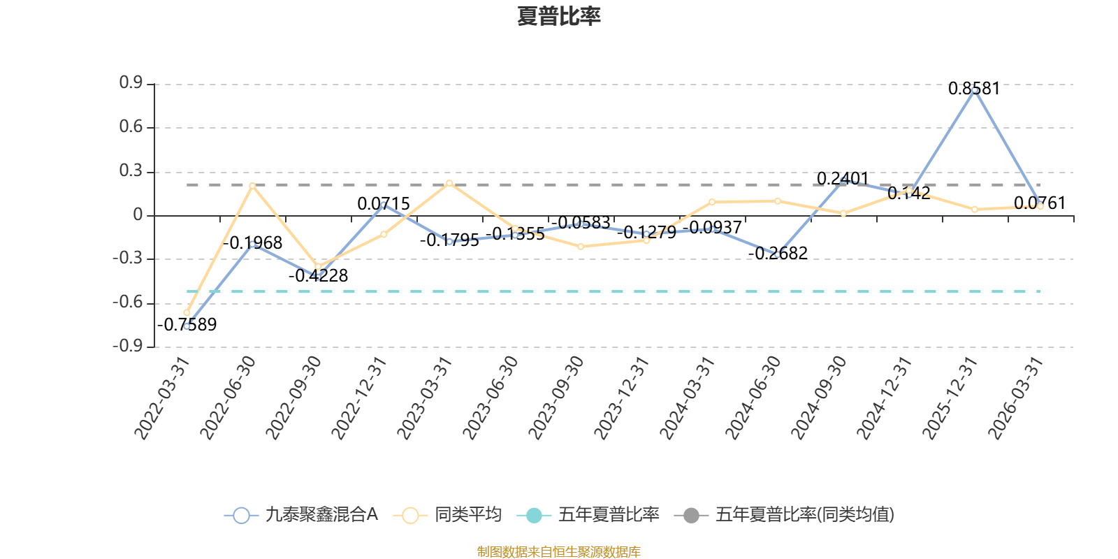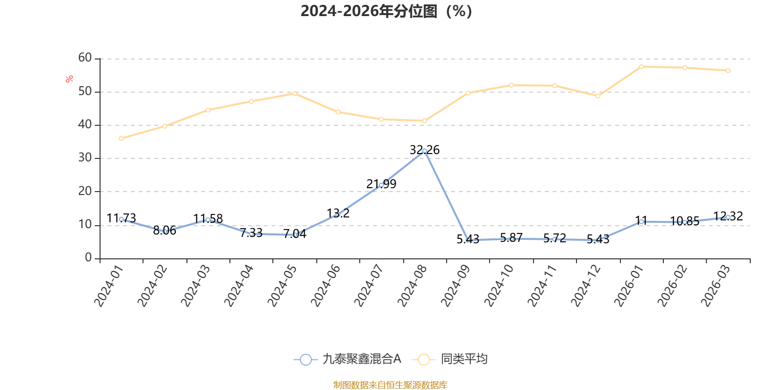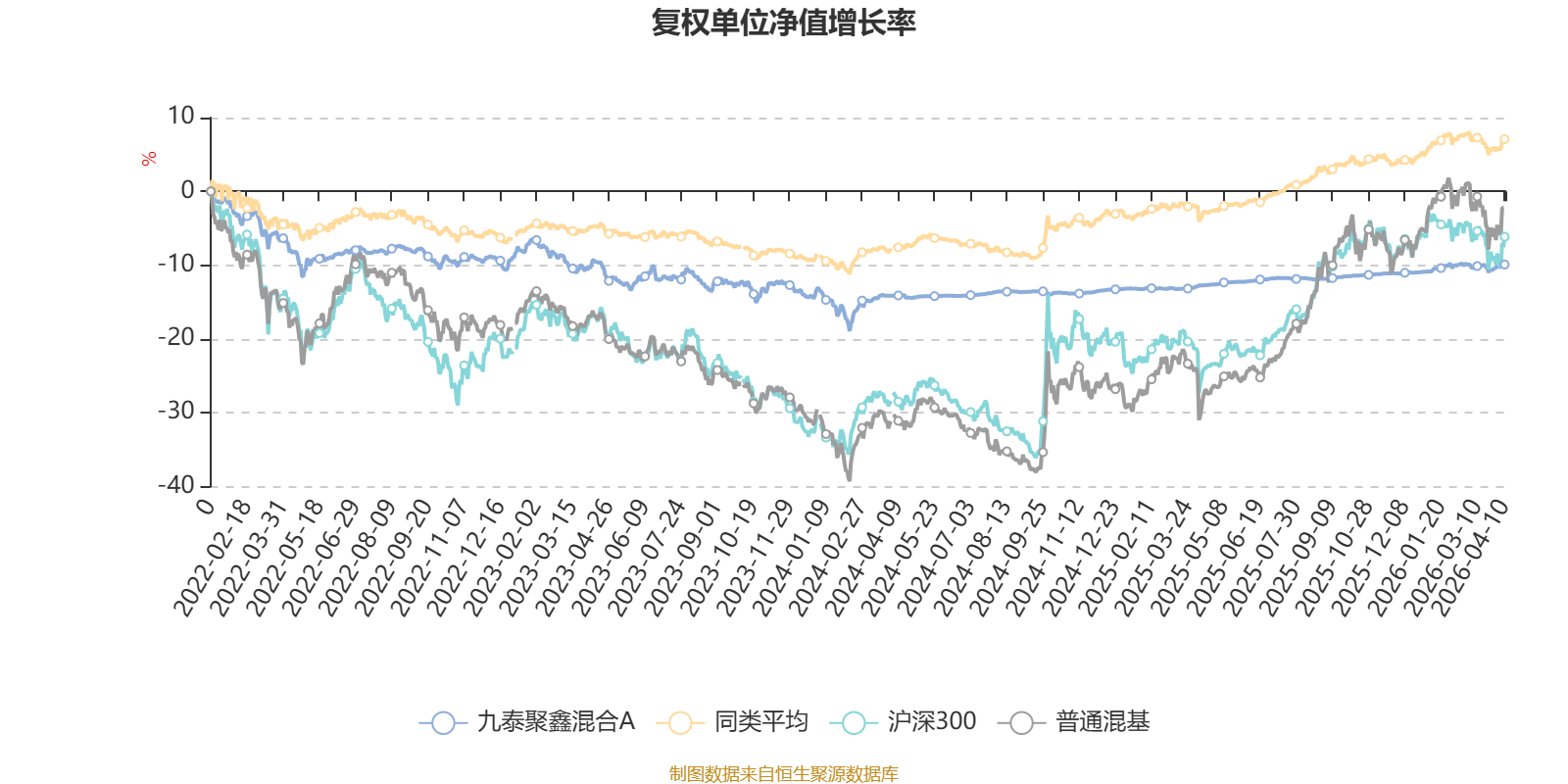 截至4月10日,九泰聚鑫混合A近三个月复权单位净值增长率为0.94%,位于同类可比基金203/683;近半年复权单位净值增长率为1.72%,位于同类可比基金311/683;近一年复权单位净值增长率为3.23%,位于同类可比基金552/683;近三年复权单位净值增长率为-0.61%,位于同类可比基金587/634。