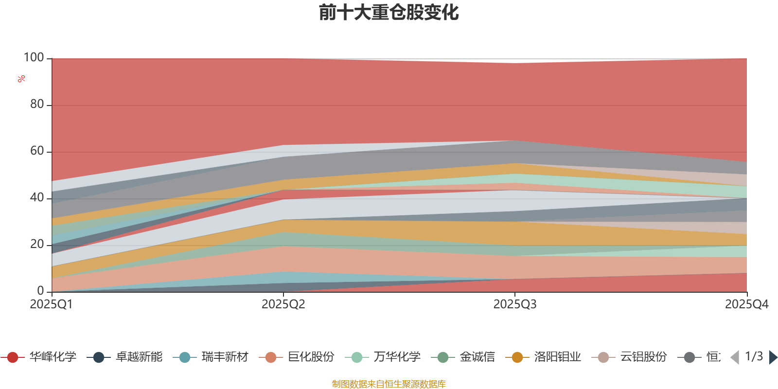 截至2025年末,基金十大重仓股分别是华峰化学、巨化股份、紫金矿业、鲁西化工、华鲁恒升、云铝股份、万华化学、恒力石化、紫金黄金国际、洛阳钼业。
