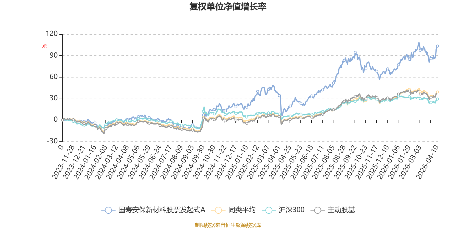 截至4月10日,国寿安保新材料股票发起式A近三个月复权单位净值增长率为11.24%,位于同类可比基金8/121;近半年复权单位净值增长率为12.29%,位于同类可比基金27/121;近一年复权单位净值增长率为82.32%,位于同类可比基金9/120。