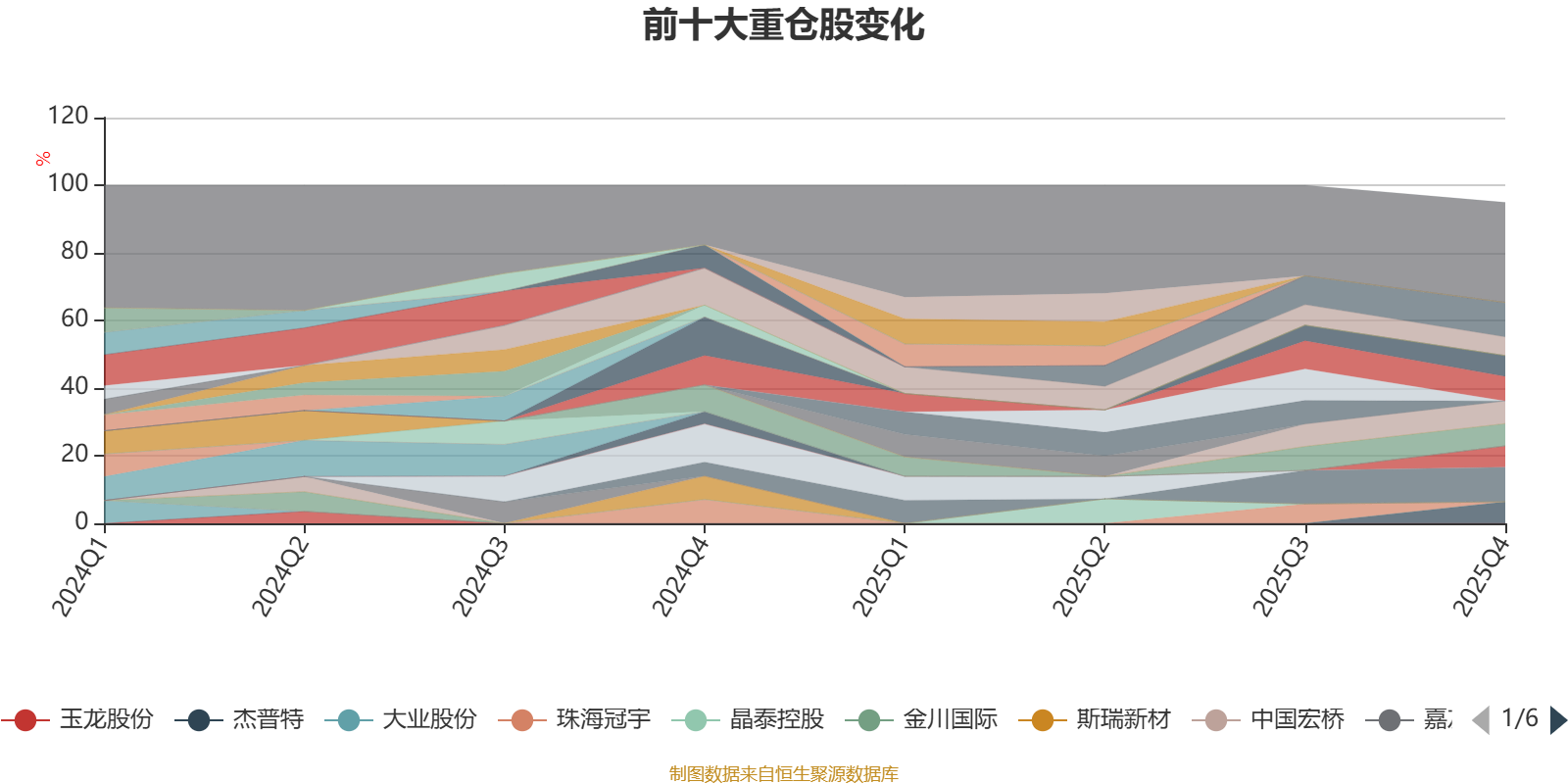 该基金持股集中度较高,近2年前十大重仓股集中度长期超过60%。截至2025年末,基金重仓股分别是东阳光、高伟电子、比亚迪电子、东来技术、瑞声科技、杰普特、联赢激光、鹏鼎控股、蓝思科技。