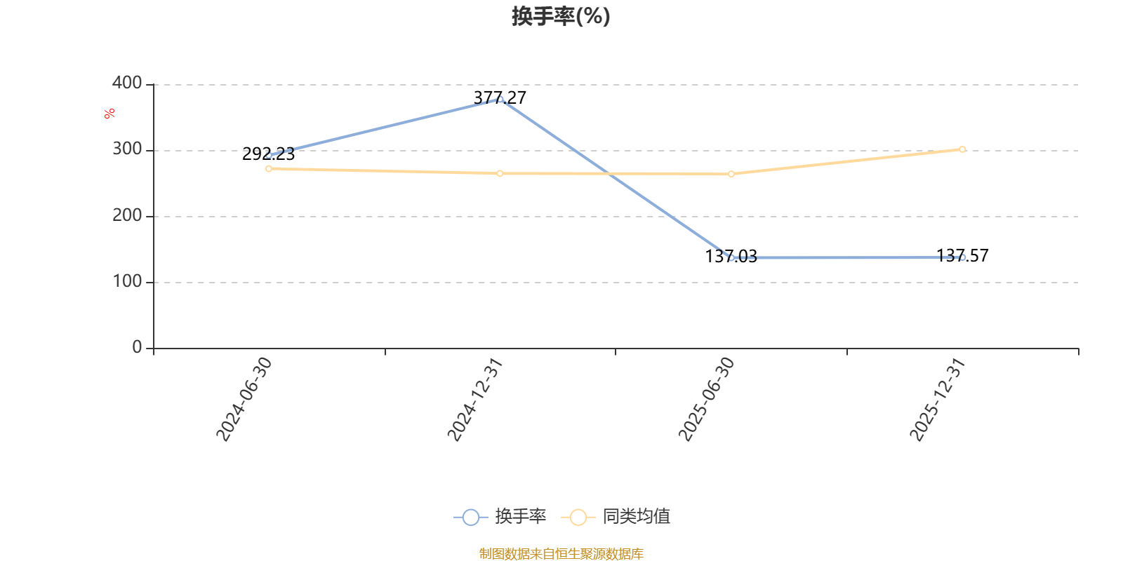 截至2025年12月31日,基金最近一年换手率约258.79%,持续1年低于同类均值。
