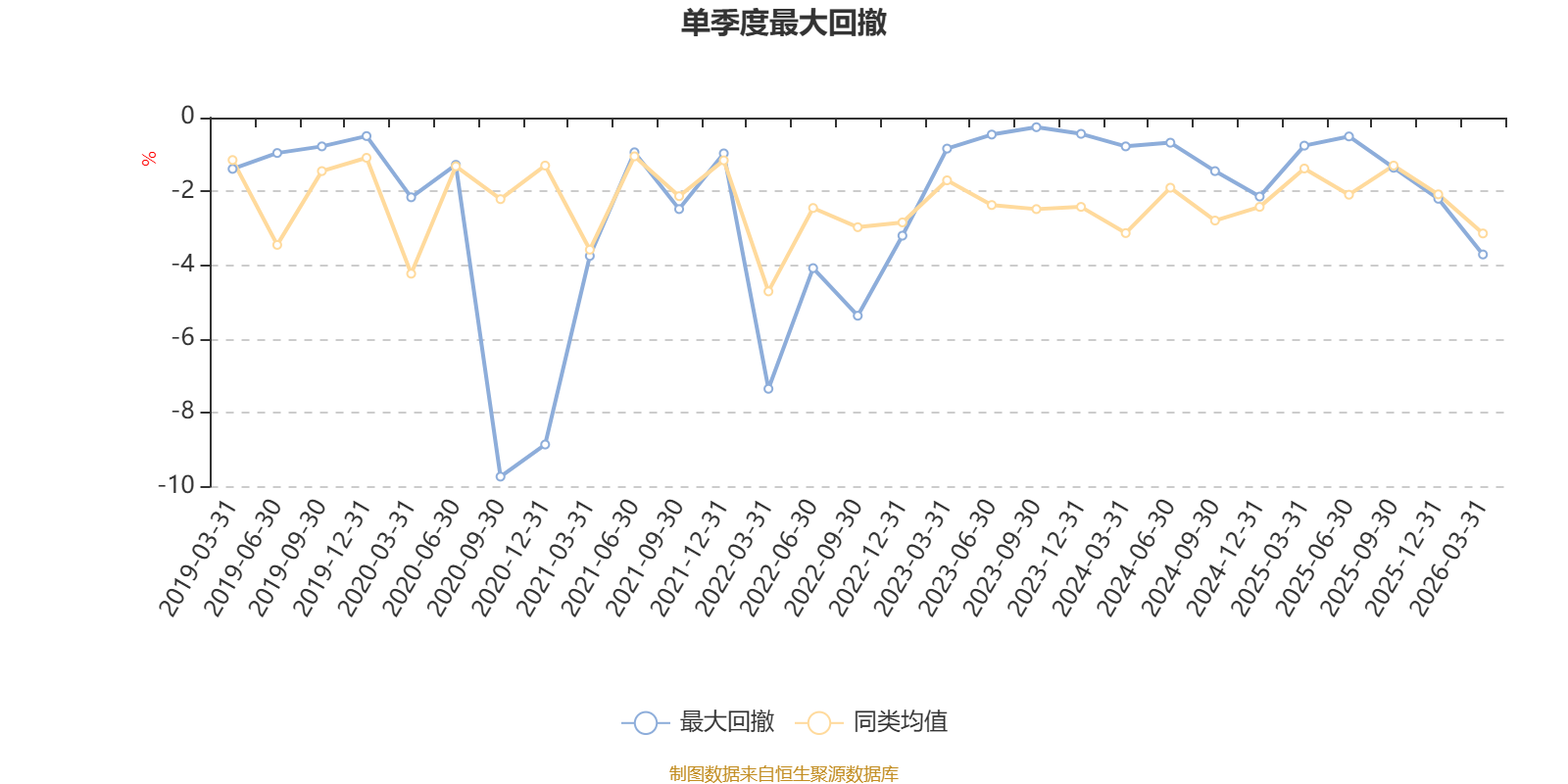 截至4月10日,基金近三年最大回撤为3.71%,同类可比基金排名103/549。单季度最大回撤出现在2020年三季度,为9.73%。