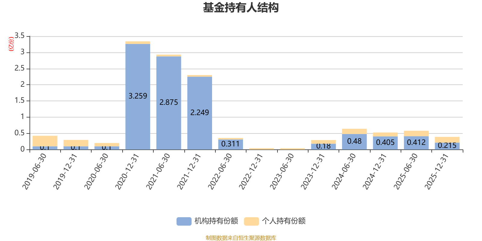 截至2025年12月31日,基金持有人共计1519户,合计持有3918.61万份。其中管理人员工持有68.69万份,占比1.75%,机构持有份额占比54.91%,个人投资者占比45.09%。