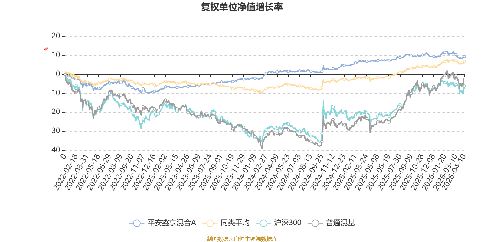截至4月10日,平安鑫享混合A近三个月复权单位净值增长率为-1.62%,位于同类可比基金574/629;近半年复权单位净值增长率为-0.48%,位于同类可比基金547/629;近一年复权单位净值增长率为2.12%,位于同类可比基金583/629;近三年复权单位净值增长率为17.17%,位于同类可比基金121/581。