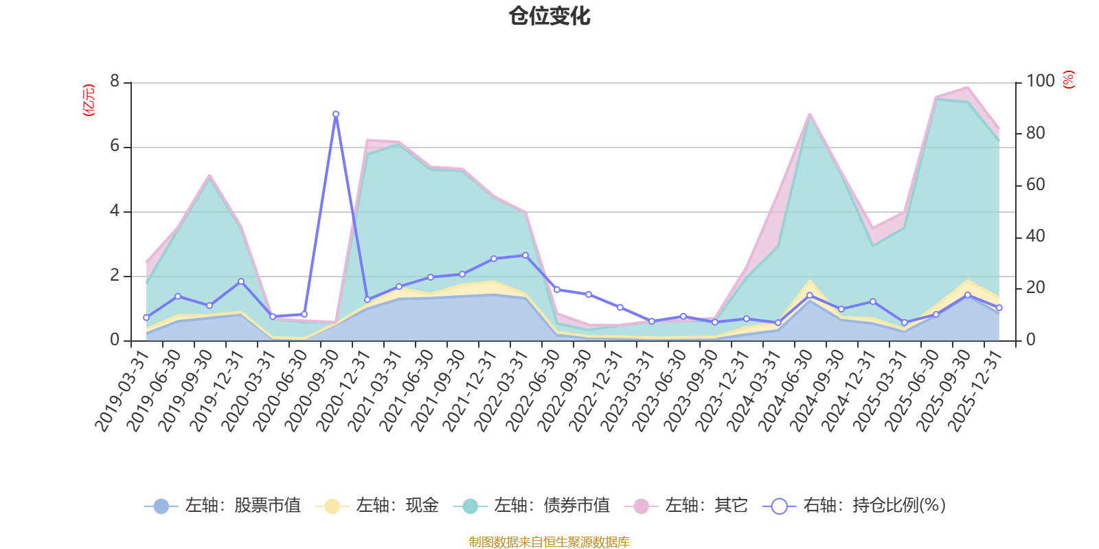 据定期报告数据统计,近三年平均股票仓位为11.04%,同类平均为19.2%。2020年三季度末基金达到87.71%的最高仓位,2024年一季度末最低,为6.99%。