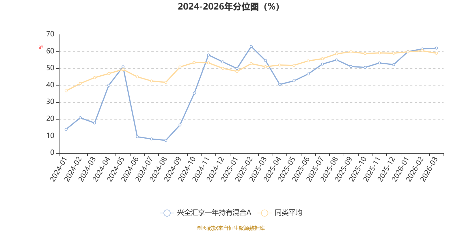 通过所选区间该基金净值增长率分位图,可以观察该基金与同类基金业绩比较情况。图为坐标原点到区间内某时点的净值增长率在同类基金中的分位数。