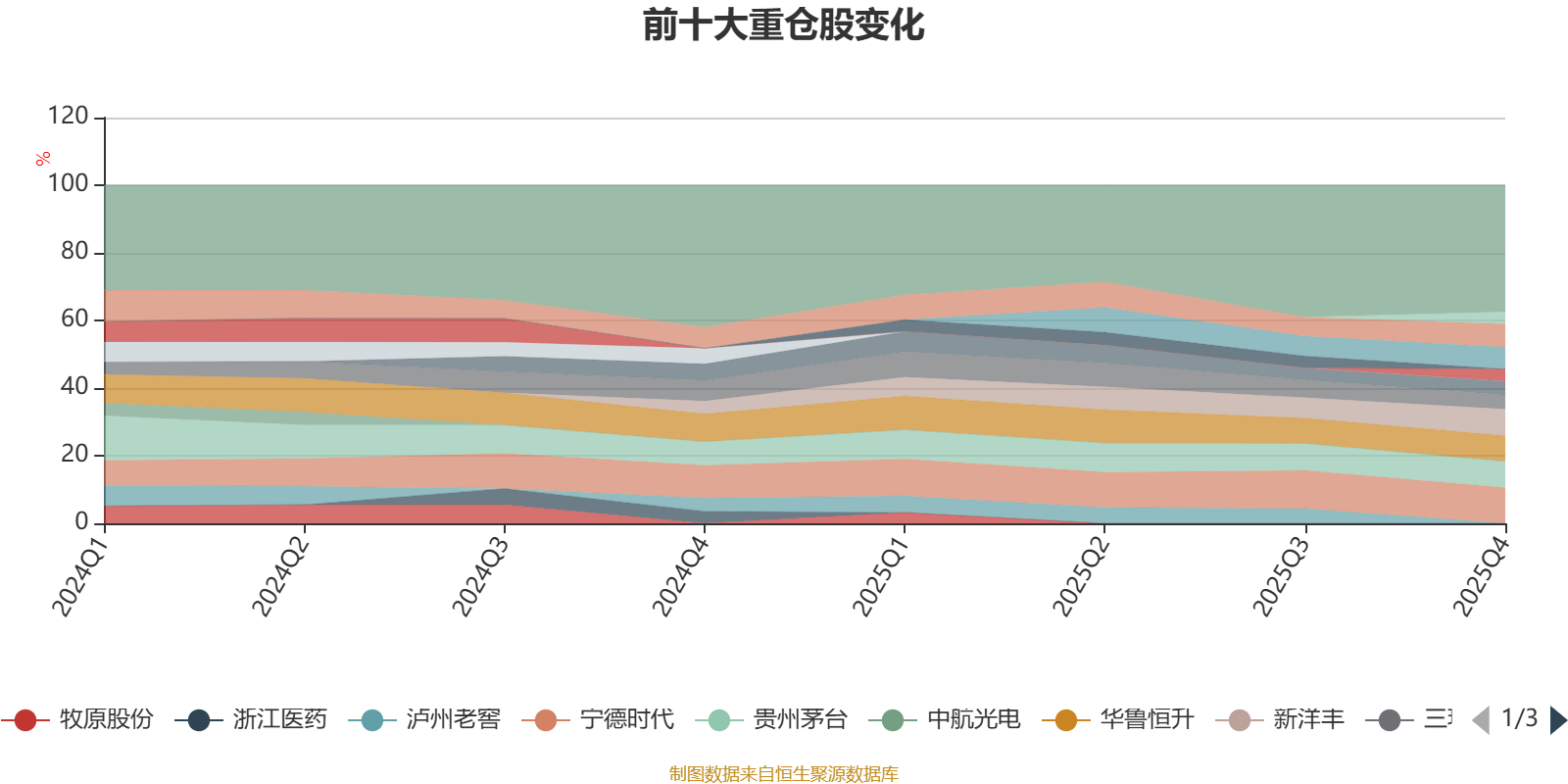 该基金持股集中度较高。截至2025年末,基金十大重仓股分别是宁德时代、新洋丰、贵州茅台、华鲁恒升、太阳纸业、史丹利、三环集团、美团-W、鼎龙股份、扬农化工。
