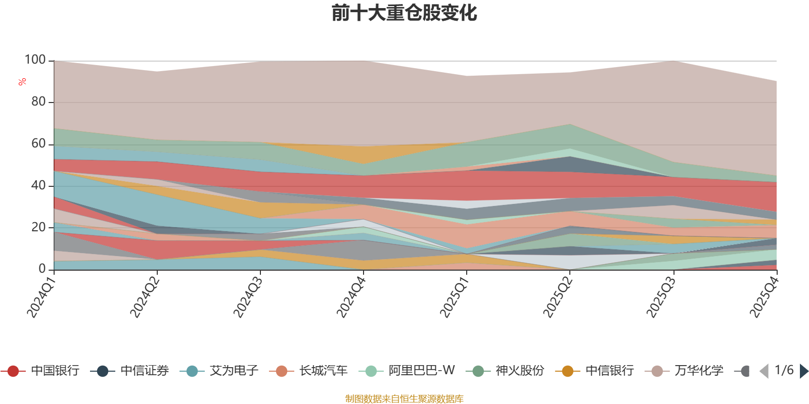 该基金持股集中度较高。截至2025年末,基金十大重仓股分别是中国移动、腾讯控股、阿里巴巴-W、贵州茅台、信达生物、紫金矿业、招商公路、中信证券、中国银行、艾迪药业。