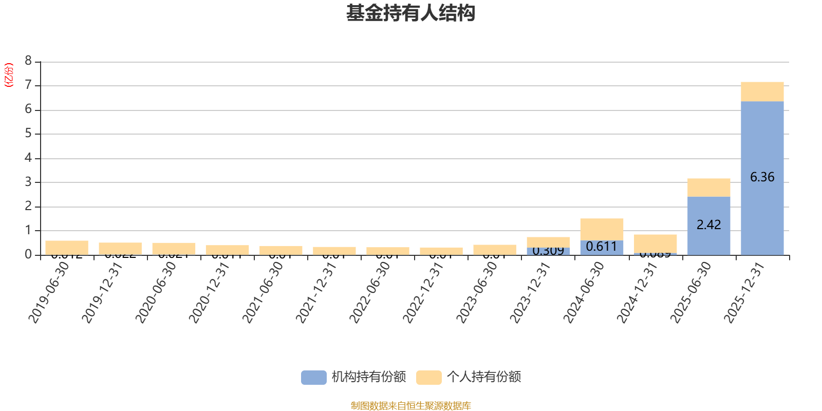 截至2025年12月31日,基金持有人共计4.8万户,合计持有7.16亿份。其中管理人员工持有211.17万份,占比0.30%,机构持有份额占比88.84%,个人投资者占比11.16%。