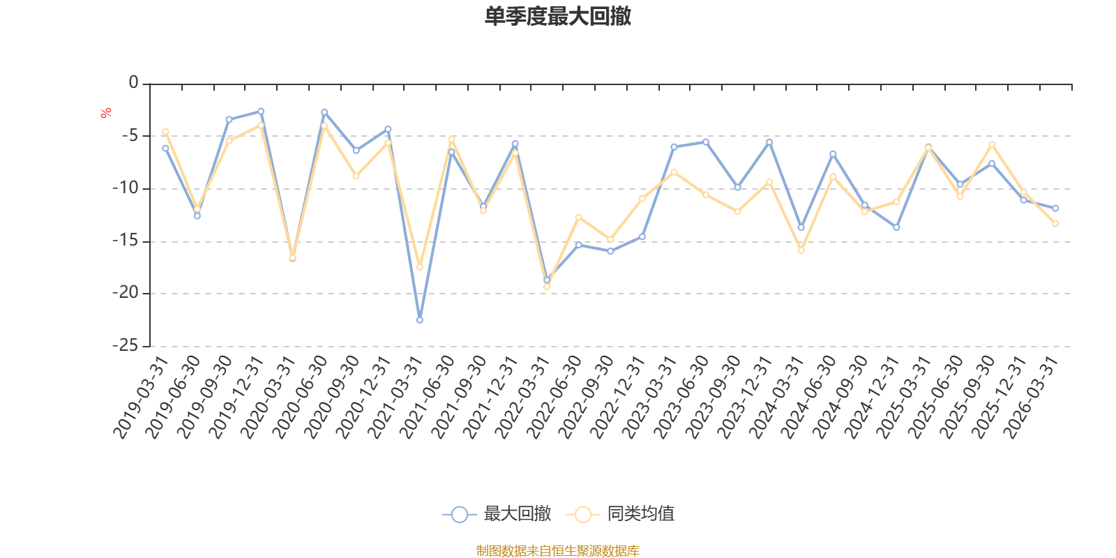 通过所选区间该基金净值增长率分位图,可以观察该基金与同类基金业绩比较情况。图为坐标原点到区间内某时点的净值增长率在同类基金中的分位数。