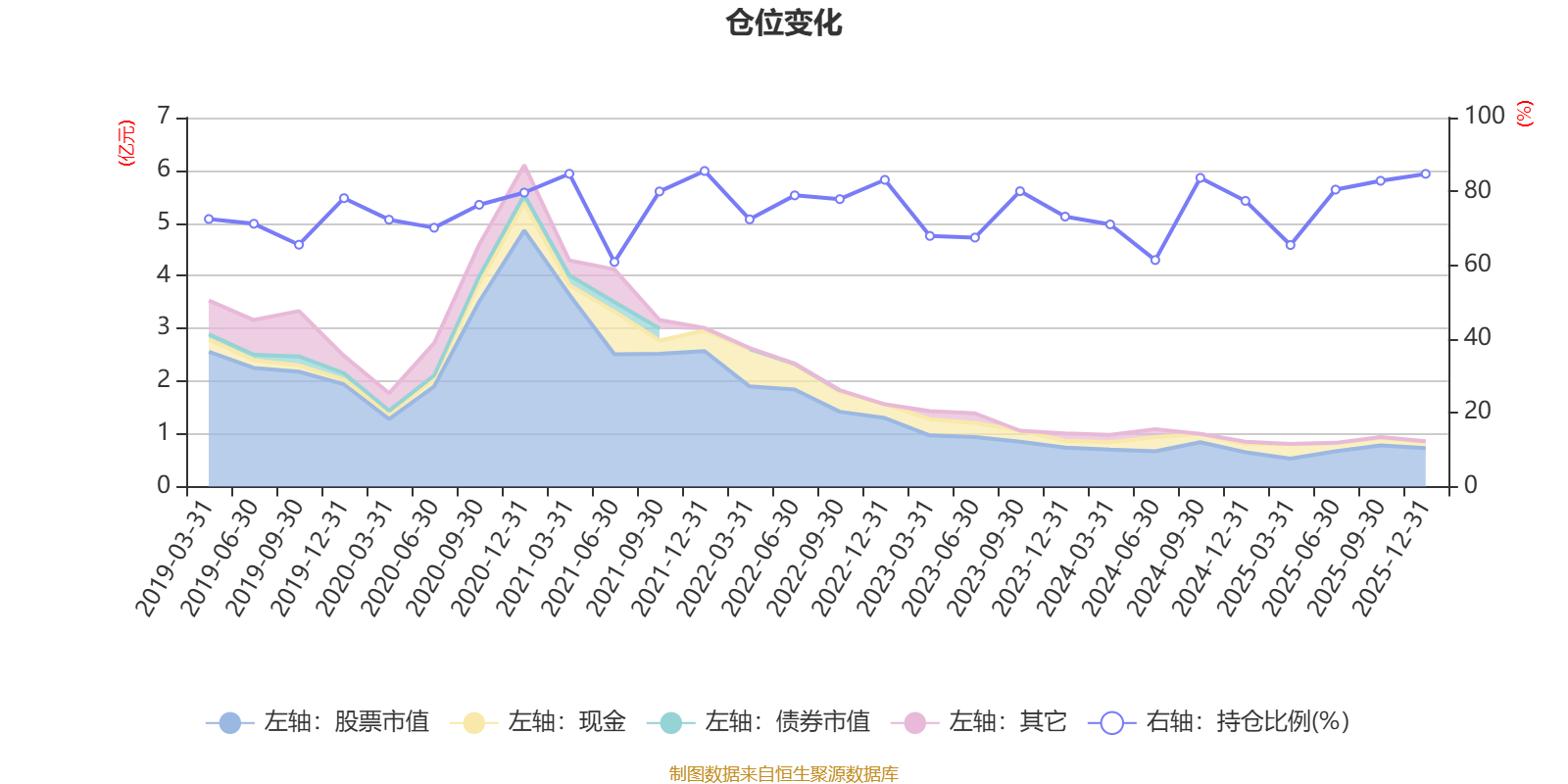 据定期报告数据统计,近三年平均股票仓位为74.65%,同类平均为84.04%。2021年末基金达到85.53%的最高仓位,2021年上半年末最低,为60.86%。