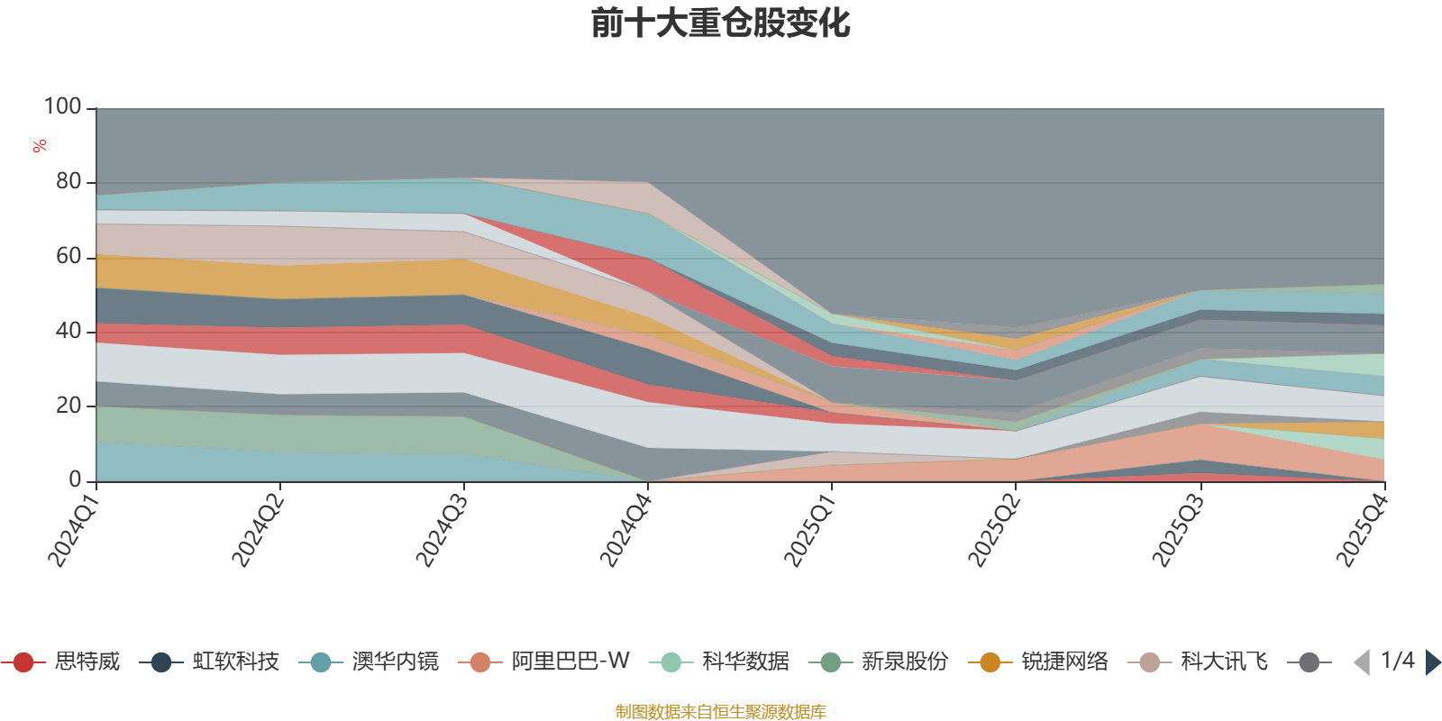 截至2025年末,基金十大重仓股分别是腾讯控股、宁德时代、浪潮信息、阿里巴巴-W、科华数据、立讯精密、快手-W、锐捷网络、北方华创、中际旭创。