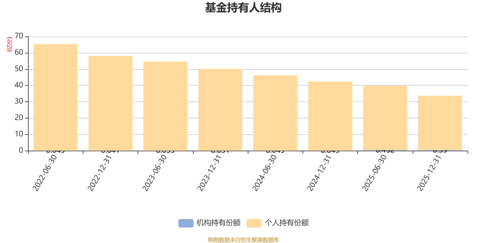 截至2025年12月31日,基金持有人共计108.38万户,合计持有33.72亿份。其中管理人员工持有172.9万份,占比0.05%,机构持有份额占比1.16%,个人投资者占比98.84%。