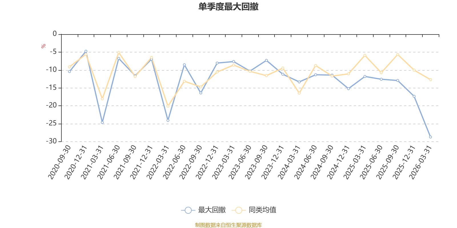 截至4月10日,基金近三年最大回撤为28.74%,同类可比基金排名171/555。单季度最大回撤出现在2026年一季度,为28.74%。
