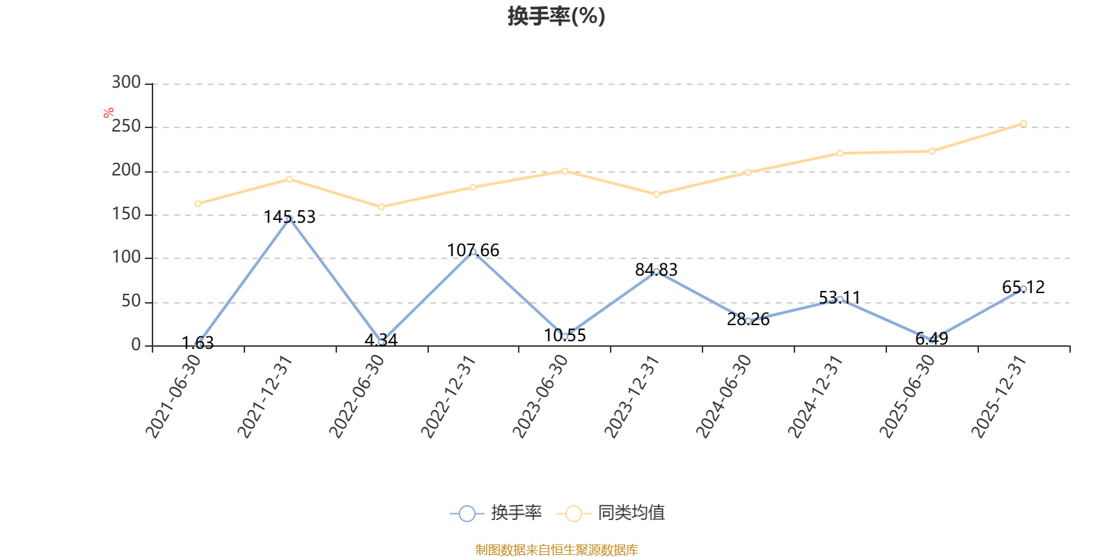 截至2025年12月31日,基金最近一年换手率约64.11%,持续低于同类均值。