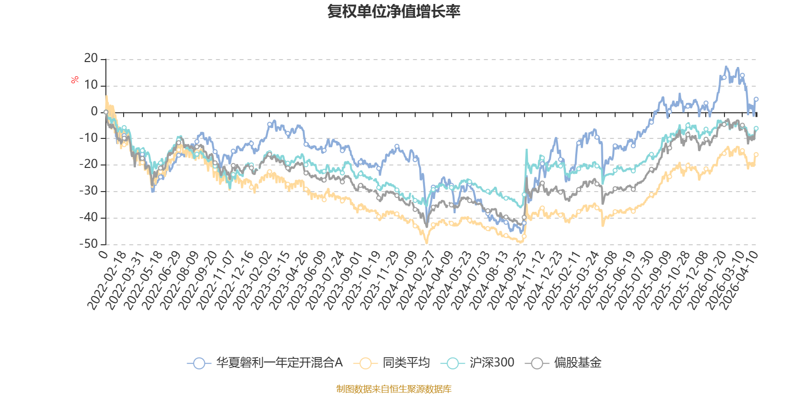 该基金属于偏股混合型基金。截至4月10日,单位净值为1.909元。基金经理是张城源,目前管理的6只基金近一年均为正收益。其中,截至4月10日,华夏磐锐一年定开混合A近一年复权单位净值增长率最高,达56.73%;华夏磐泰混合(LOF)A最低,为9.29%。