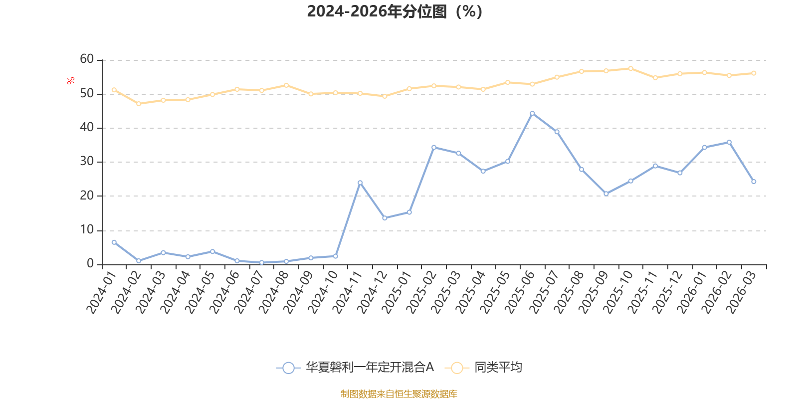通过所选区间该基金净值增长率分位图,可以观察该基金与同类基金业绩比较情况。图为坐标原点到区间内某时点的净值增长率在同类基金中的分位数。