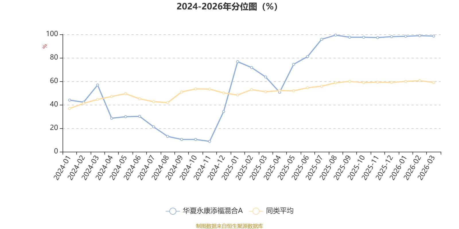 通过所选区间该基金净值增长率分位图,可以观察该基金与同类基金业绩比较情况。图为坐标原点到区间内某时点的净值增长率在同类基金中的分位数。