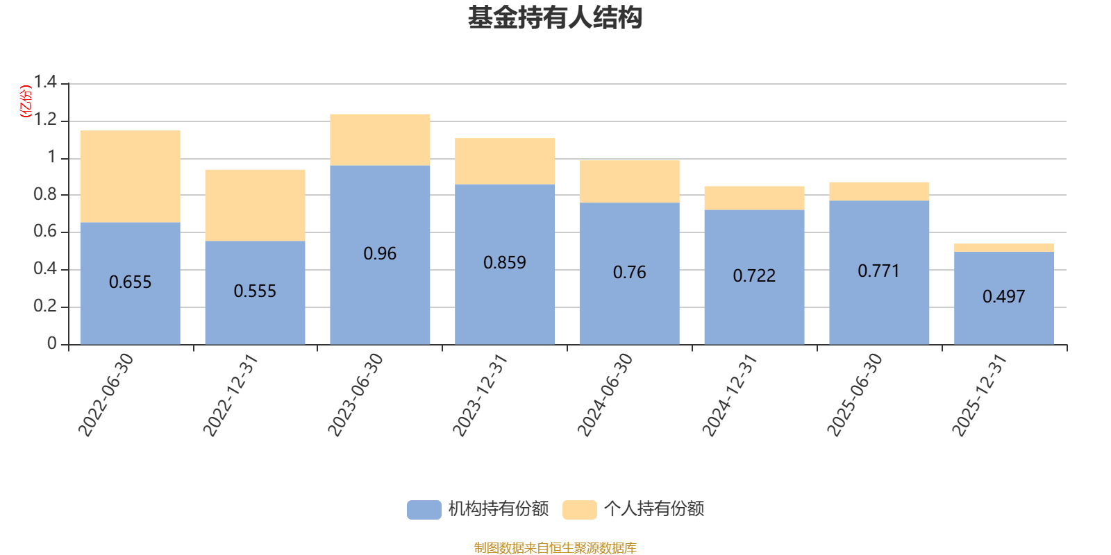 截至2025年12月31日,基金持有人共计116户,合计持有5404.07万份。其中管理人员工持有98.07万份,占比1.82%,机构持有份额占比91.93%,个人投资者占比8.07%。