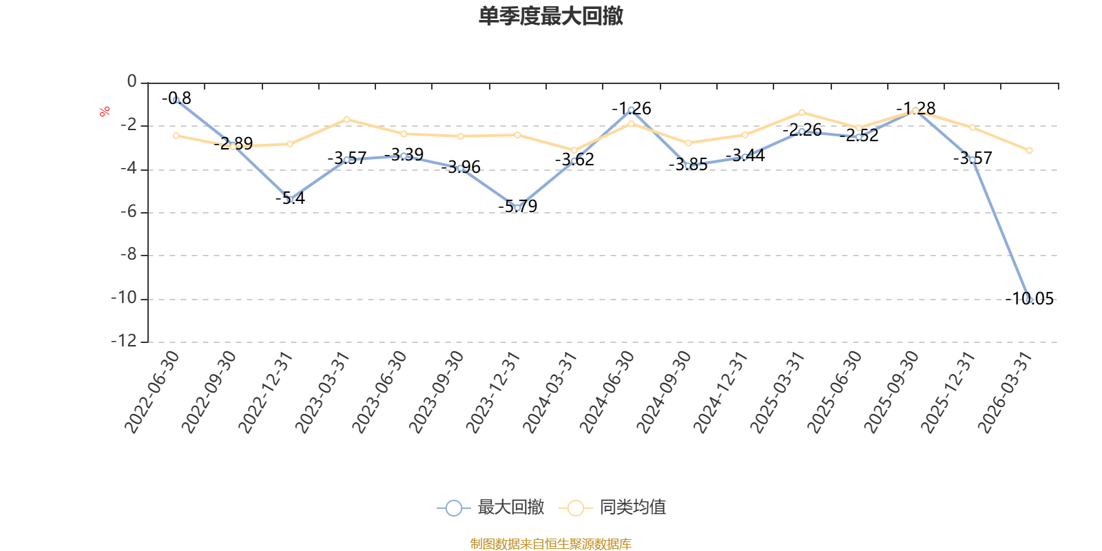 截至4月10日,基金近三年最大回撤为10.38%,同类可比基金排名435/549。单季度最大回撤出现在2026年一季度,为10.05%。
