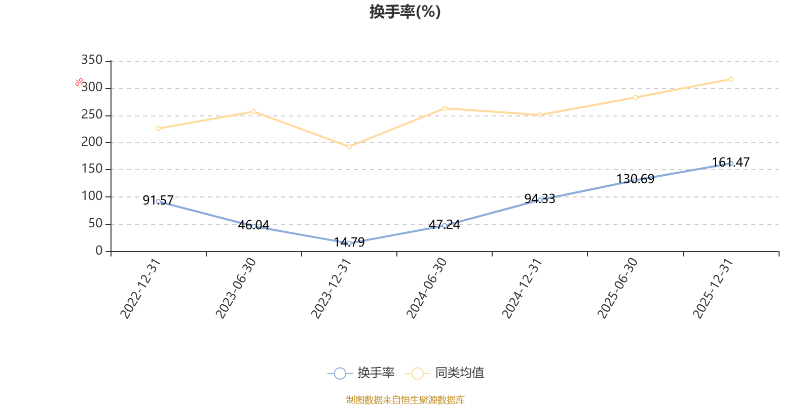 截至2025年12月31日,基金最近一年换手率约303.37%,持续低于同类均值。