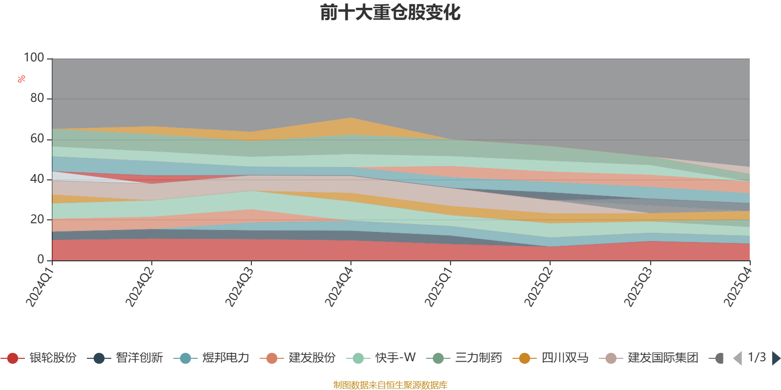 截至2025年末,基金十大重仓股分别是银轮股份、美埃科技、腾讯控股、快手-W、四川双马、煜邦电力、博迈科、三力制药、保利物业、楚天科技。