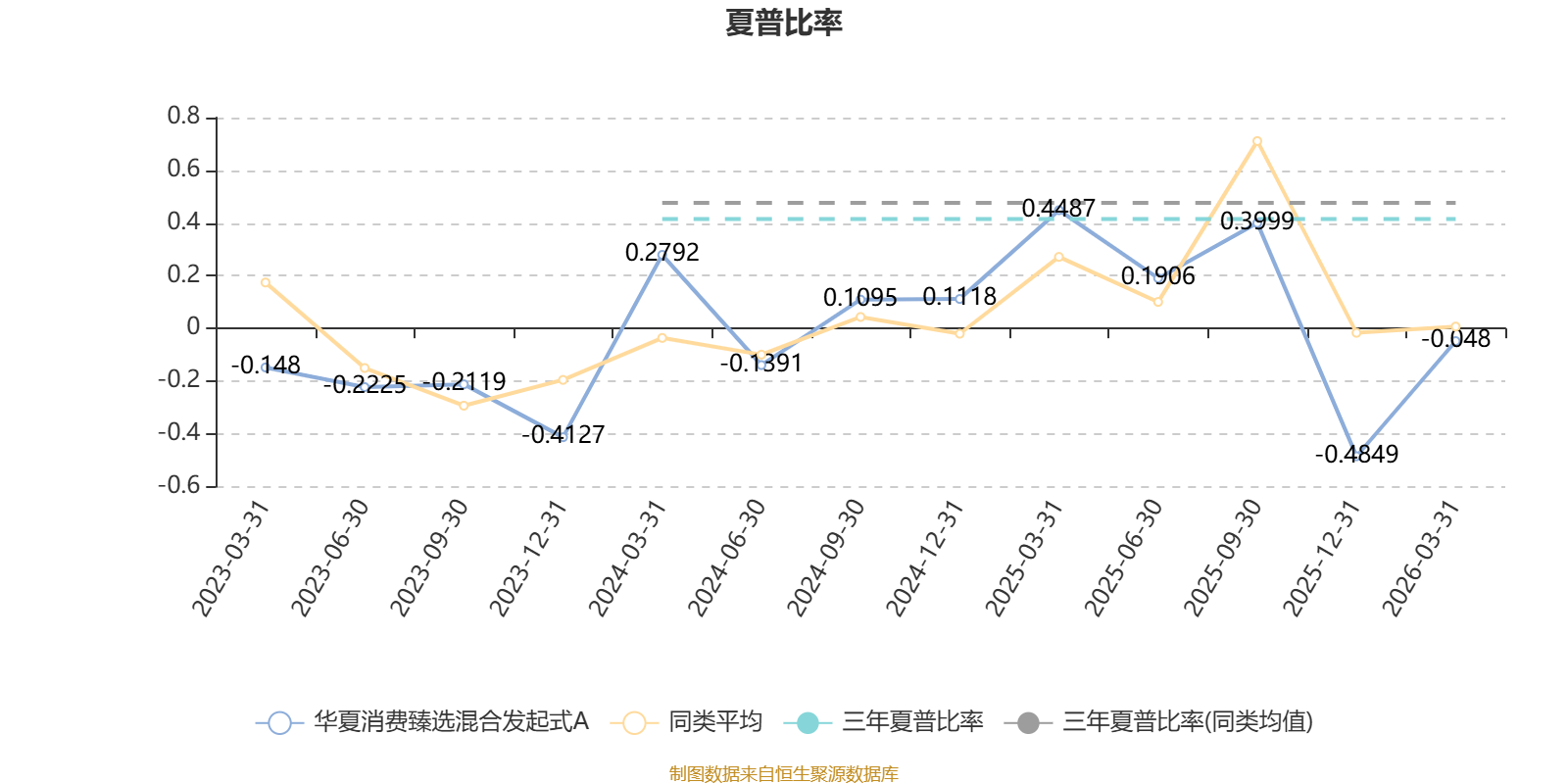 截至3月31日,基金近三年夏普比率为0.4153,位于同类可比基金325/550。