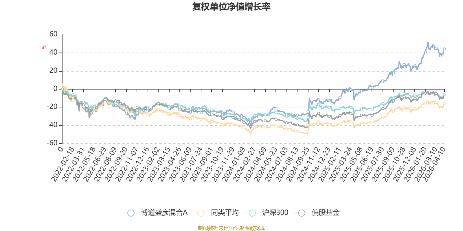 截至4月10日,博道盛彦混合A近三个月复权单位净值增长率为7.32%,位于同类可比基金86/621;近半年复权单位净值增长率为12.61%,位于同类可比基金114/621;近一年复权单位净值增长率为56.95%,位于同类可比基金150/618;近三年复权单位净值增长率为73.50%,位于同类可比基金39/559。