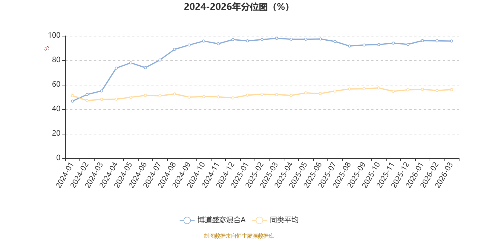 通过所选区间该基金净值增长率分位图,可以观察该基金与同类基金业绩比较情况。图为坐标原点到区间内某时点的净值增长率在同类基金中的分位数。