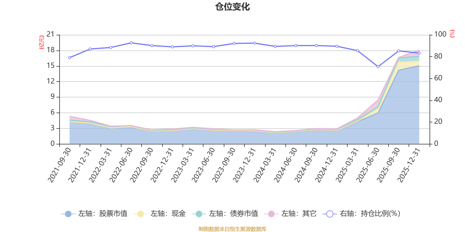 据定期报告数据统计,近三年平均股票仓位为87.3%,同类平均为85.83%。2022年上半年末基金达到92.64%的最高仓位,2025年上半年末最低,为70.82%。