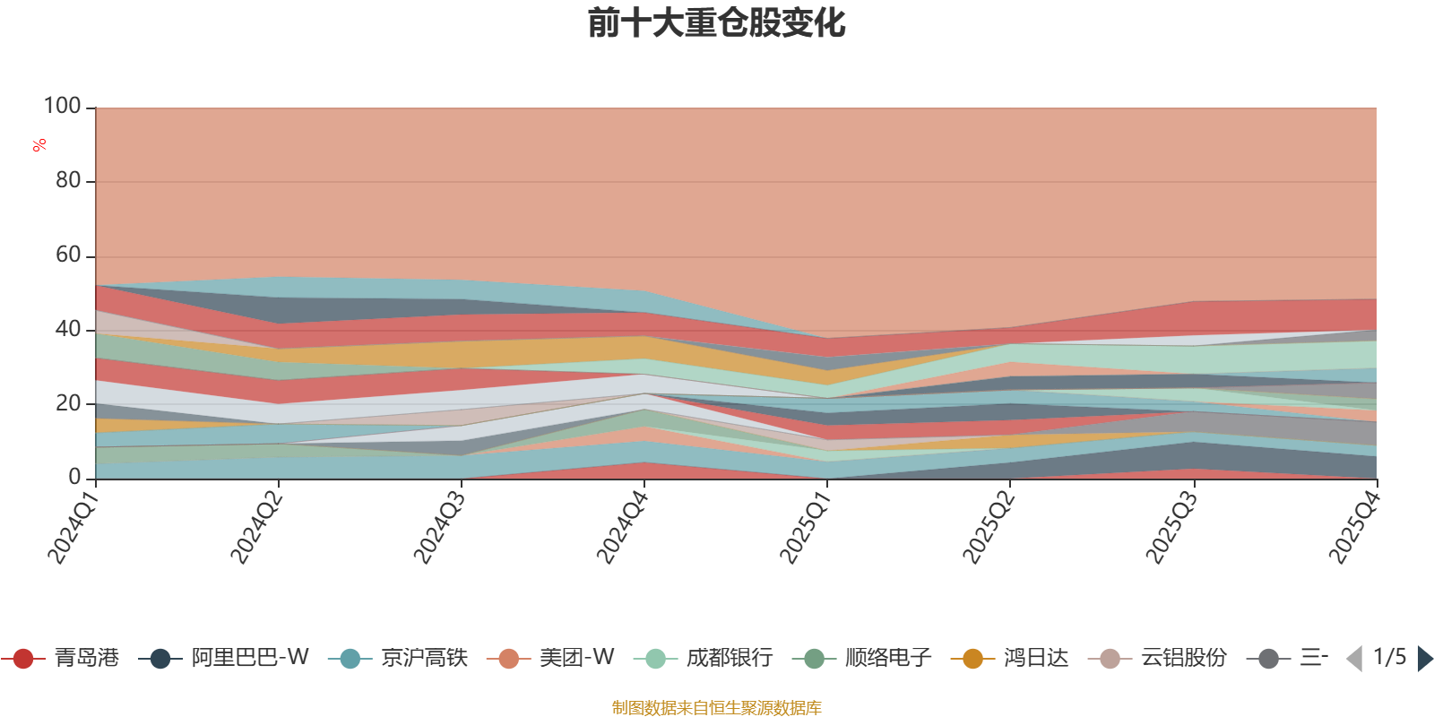 截至2025年末,基金十大重仓股分别是紫金矿业、腾讯控股、三一重工、阿里巴巴-W、广发证券、伊利股份、新澳股份、山推股份、京沪高铁、伟测科技。
