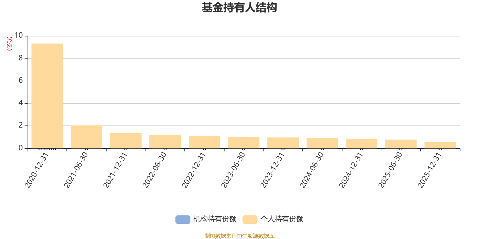 截至2025年12月31日,基金持有人共计1856户,合计持有5465.74万份。其中管理人员工持有12.3万份,占比0.23%,机构持有份额占比0.00%,个人投资者占比100.00%。